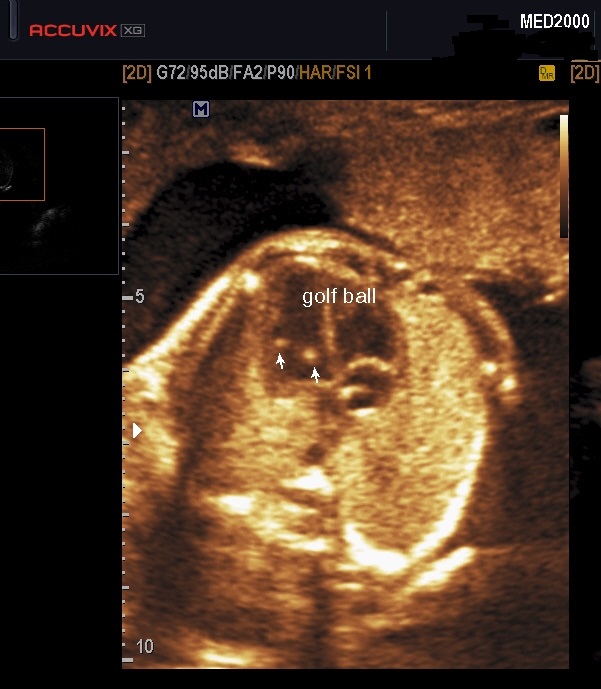 In letteratura vi è discordanza in merito al rischio di Sindrome di Down e malformazioni cardiache nei feti con presenza di Golf Ball e sulla necessità di effettuare un Test Prenatale Non Invasivo (NIPT), una Ecocardiografia Fetale o una tecnica di diagnosi prenatale invasiva.