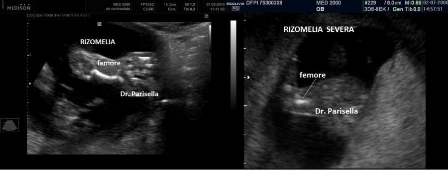 Le anomalie scheletriche sono sindattilia che interessa caratteristicamente il II-III dito dei piedi, polidattilia postassiale, rizomelia, pollici corti.