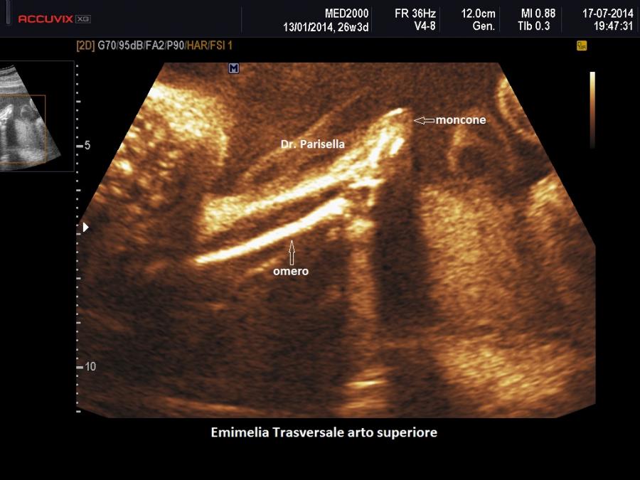 Questi difetti sono in genere facilmente diagnosticabili; difficoltà possono aversi nello studio dell'arto posto distalmente o in presenza di condizioni come l'oligoidramnios e/o la gemellarità.