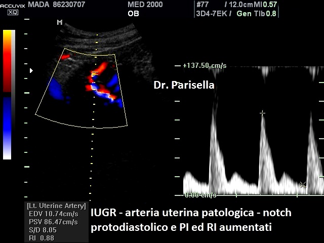 VELOCIMETRIA DOPPLER - La velocimetria Doppler consente di valutare la funzione utero-placentare attraverso lo studio dei flussi nelle arterie uterine e ombelicali (C.C. Lees et al., ISUOG Practice Guidelines 2020 ) ed ha assunto un ruolo di primaria importanza per lo screening, la diagnosi, l'inquadramento prognostico e il monitoraggio oltre che della restrizione della crescita fetale anche di altre patologie della madre e del feto, tra le quali la patologia ipertensiva della gravidanza e l'anemia fetale (Linee Guida SIEOG, 2021).