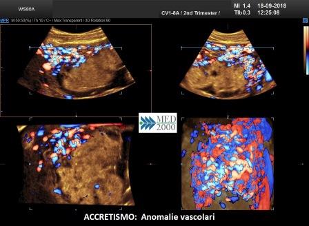 Le modificazioni anatomopatologiche caratteristiche dell'accretismo placentare hanno un corrispettivo nei quadri ecografici.