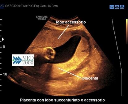 circa il 5% delle gravidanze, rilevabile all'ecografia come un'area distinta di