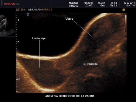 Nel sospetto di anomalie genitali è preferibile iniziare sempre con un approccio ecografico transaddominale sovrapubico a vescica piena (TA), che necessariamente deve includere la ricerca della presenza e della morfologia di entrambi i reni, considerato che in una percentuale variabile dal 20% al 70% dei casi sono presenti anomalie renali. Si passa poi all'approccio transvaginale (TV); tale metodica non è praticabile nell'adolescente (sessualmente inattiva) dove può essere utilizzato un approccio transperineale/translabiale e, in pazienti collaboranti, un approccio transrettale. Tali metodiche devono necessariamente soddisfare due condizioni:
