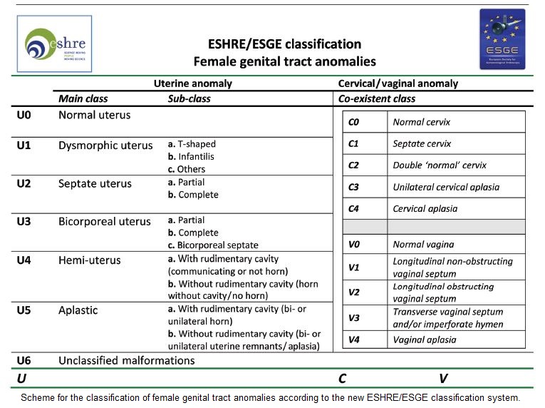L'Ultima classificazione è quella proposta nel 2013 dalla Società Europea di Riproduzione Umana ( ESHRE ) e dalla Società Europea di Endoscopia Ginecologica ( ESGE ) appresso riportata.