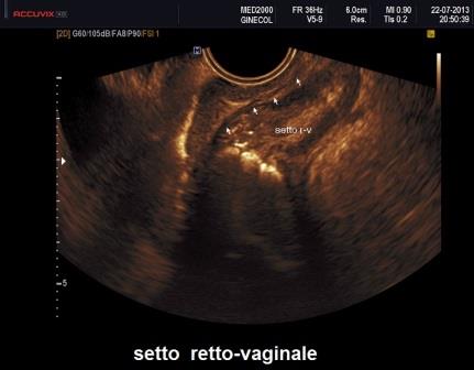 I noduli interessanti la parete vaginale e il setto retto-vaginale si presentano come noduli ipoecogeni, irregolari, accompagnati ad ispessimento della parete vaginale.