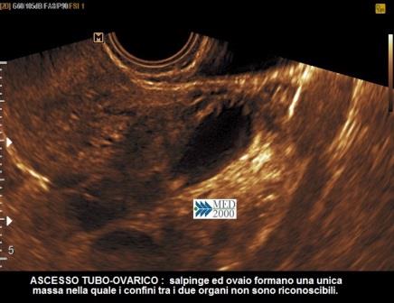 Con l'aggravarsi del processo flogistico si passa al quadro dell'ascesso tubo-ovarico in cui tuba ed ovaio sono compresi in un unica massa a contorni sfumati nella quale le strutture che la costituiscono, tuba ed ovaio, non sono più riconoscibili. Il questo caso le immagini ecografiche sono alquanto complesse: la massa relativa all'ascesso tubo-ovarico presenta dei confini sfumati, non distinguibili con le anse intestinali, e il contenuto è disomogeneo per la contemporanea presenza di aree a diversa ecostruttura (anecogene, ipoecogene, iperecogene). L'ascesso può inoltre essere circondato da liquido libero nella pelvi, in genere ad aspetto denso in quanto costituito da pus, oppure possono coesistere delle raccolte saccate a localizzazione molto varia, anche distanti dall'ascesso.