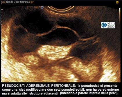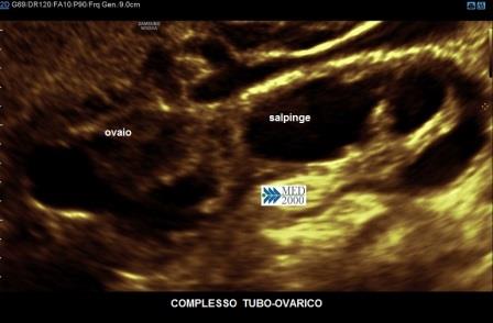 Inoltre nella fase cronica la vascolarizzazione della parete tubarica è modesta e non intensa come nelle forme acute. Può a volte coesistere un versamento pelvico in genere sotto forma di cisti da inclusione peritoneale (cisti anecogena con sottili setti incompleti, localizzata nel Douglas, che non avendo pareti esterne proprie mostra una morfologia che si adatta alla parete pelvica laterale ed all'intestino).