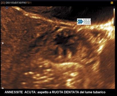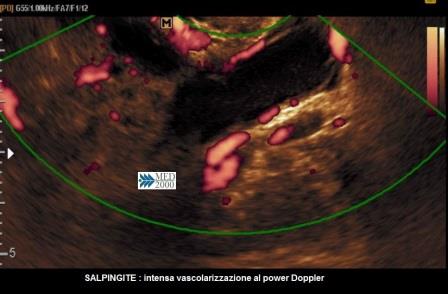 Nella fase acuta dell'annessite lo studio con il color/power Doppler consente di evidenziare una intensa vascolarizzazione tubo/ovarica con flussi a bassa resistenza; non vi sono allo stato valori standard di RI e PI per cui è importante l'esperienza dell'operatore nella valutazione della ipervascolarizzazione caratteristica della fase acuta delle annessiti.