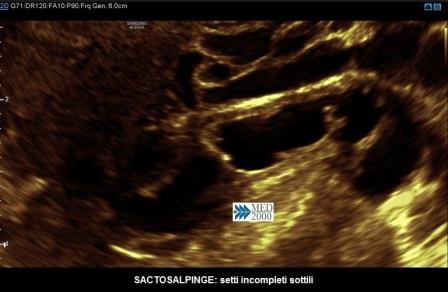 Sempre in sezione trasversa è possibile individuare dei setti incompleti spessi che non raggiungono la parete tubarica opposta. Questo segno non sembra essere caratteristico delle forme acute in quanto è possibile osservarlo anche nelle idrosalpingi.