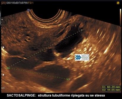 Superata la fase acuta dell'infiammazione annessiale possono esitare, anche a distanza di molto tempo, alterazioni dell'ecoarchitettura degli annessi che configurano il quadro della idrosalpinge o sactosalpinge. Le caratteristiche ecografiche della idrosalpinge, diverse dai quadri delle forme acute, sono le seguenti: