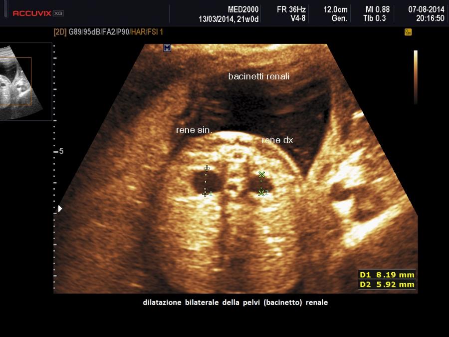 - Nelle forme bilaterali e severe è importante la valutazione dei segni di compromissione della funzionalità renale come l'oligoidramnios.