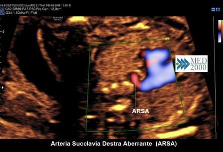 La velocità di flusso attraverso l'ARSA è più bassa rispetto ai grossi vasi per cui per ottenere una ottimale visualizzazione dell'arteria anomala è opportuno ridurre la PRF di circa 20 cm/sec. se si usa il Color-Doppler oppure utilizzare il Power-Doppler.