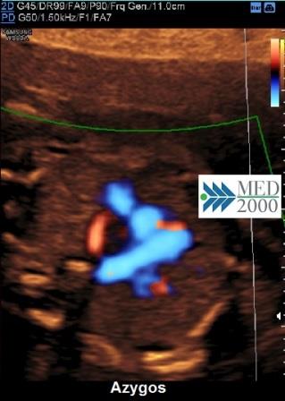 Se per la posizione del feto l'immagine a "V" è posta in modo che è l'aorta ad essere più vicina alla sonda, l'ARSA assume la colorazione in rosso.