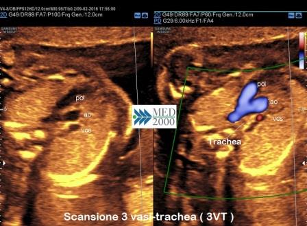 La diagnosi ecografica si basa sui seguenti reperti nella scansione 3VT: