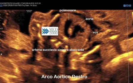 Le anomalie dell'arco aortico possono essere un reperto isolato nel corso di un esame ecografico prenatale, oppure possono essere espressione di quadri più complessi per la associazione con cardiopatie congenite o con anomalie cromosomiche. In particolare è descritta l'associazione tra arco aortico destro e microdelezione del cromosoma 22 (22q11) e tra arteria succlavia destra aberrante e trisomia 21.