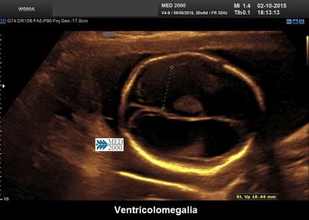 - ventricolomegalia lieve: la misurazione dell'atrio è compresa tra 10 e 12,9 mm.; essa può rappresentare una variantre della norma specie nei feti di sesso maschile; può essere temporanea, espressione di aneuploidie, reperto iniziale di anomalie della migrazione e/o proliferazione neuronale (es. lissencefalia) o reperto iniziale di una idrocefalia che si manifesterà successivamente.