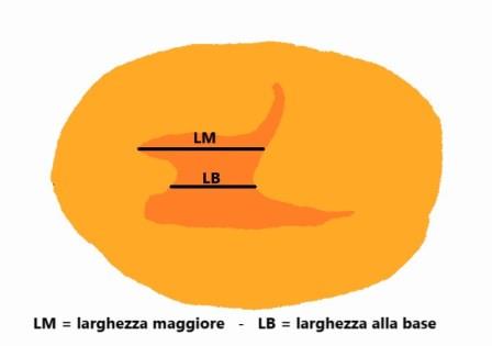 La larghezza della nicchia deve essere misurata in scansione assiale: anche qui, come per la lunghezza, deve essere misurata sia la larghezza maggiore che la larghezza alla base della nicchia (se alla base vi è la larghezza maggiore si misura solo quella). Solo queste misure, definite di base, sono considerate essenziali.