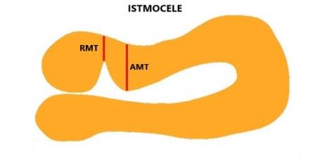 Nella classificazione della gravità clinica dell'istmocele alcuni Autori valutano solo lo spessore del miometrio misurato all'apice dell'istmocele (RMT) per cui la gravità del difetto è tanto maggiore quanto minore è lo spessore del miometrio residuo. Altri (Tower AM, 2013) valutano il rapporto tra lo spessore del miometrio residuo misurato all'apice dell'istmocele e spessore del miometrio adiacente all'istmocele (RMT/RMA).